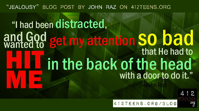 Once I understood why I kept thinking about that, I was overjoyed! I had been distracted, and God wanted to get my attention so bad that He had to hit me in the back of the head with a door to do it. He was jealous for my attention. My own good is so intertwined with loving Him with all my heart, soul, strength, and mind, that He was willing to go that far to put me back on track.